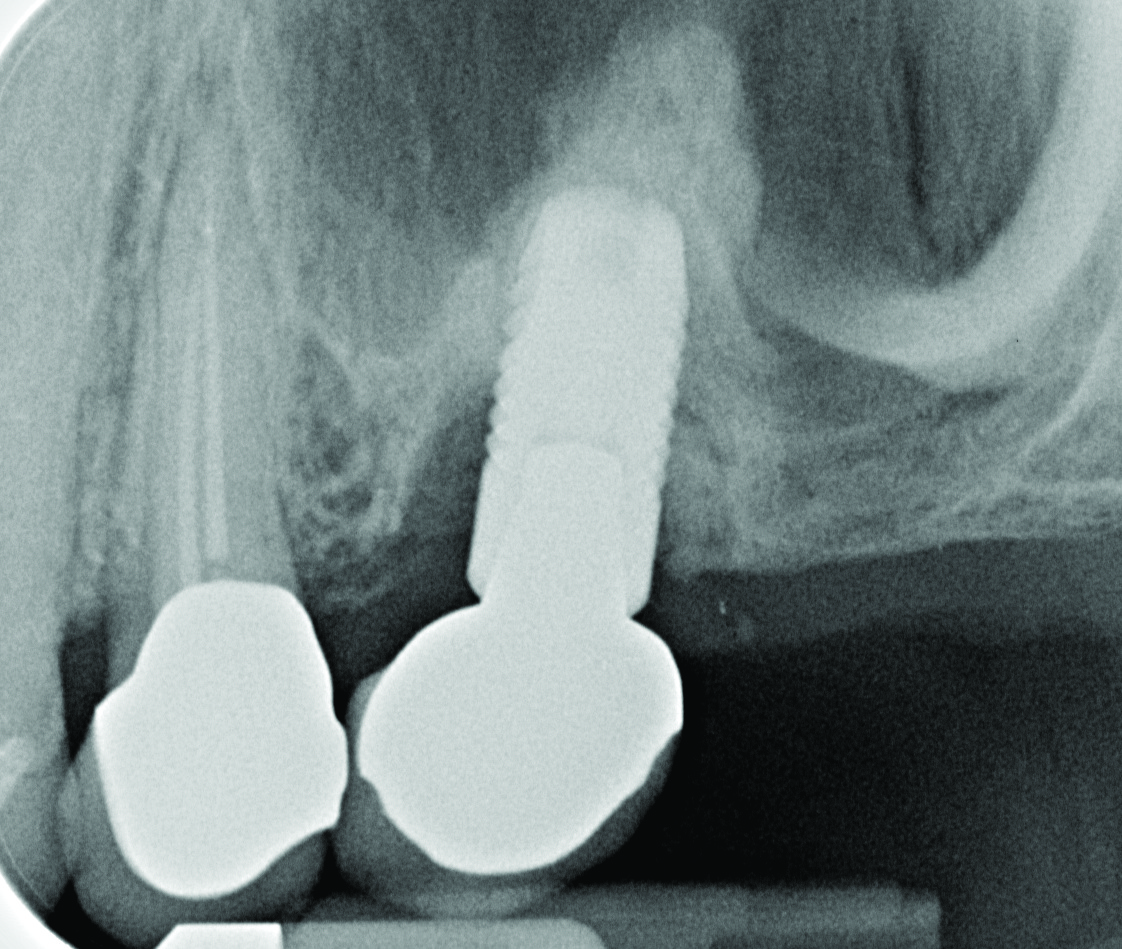 The authors believe, in accordance with the American Academy of Periodontology’s whitepaper,21 that clinicians should obtain radiographs that establish baseline bone levels both at the time of implant placement and immediately following final prosthesis insertion to facilitate comparison. They should also be taken at the first signs of disease that could signal bone loss, including change in tissue tone and color, bleeding, purulence, and increased or increasing probing depths—all of which should be evaluated at every visit.21